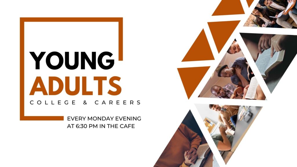 Our Young Adults group meets on Monday evenings for Bible study, conversation, and community. It’s a space to ask questions, grow deeper in your faith, and form meaningful friendships that carry into everyday life. If you’re looking for connection and purpose as you navigate adulthood, we’d love to have you join us.